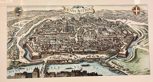 Wien, Vogelschau, koloriert, von Ataria, Wien, gerahmt