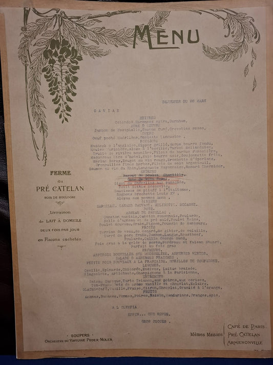 Georges Redon, um 1910, 2 Speisekarten Café de Paris