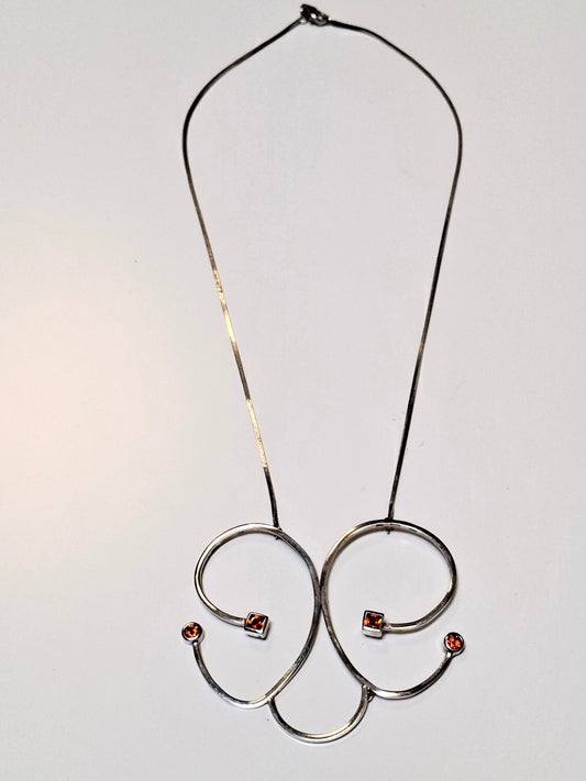 Elegante Vintage-Silberkette mit orangefarbenem Strass