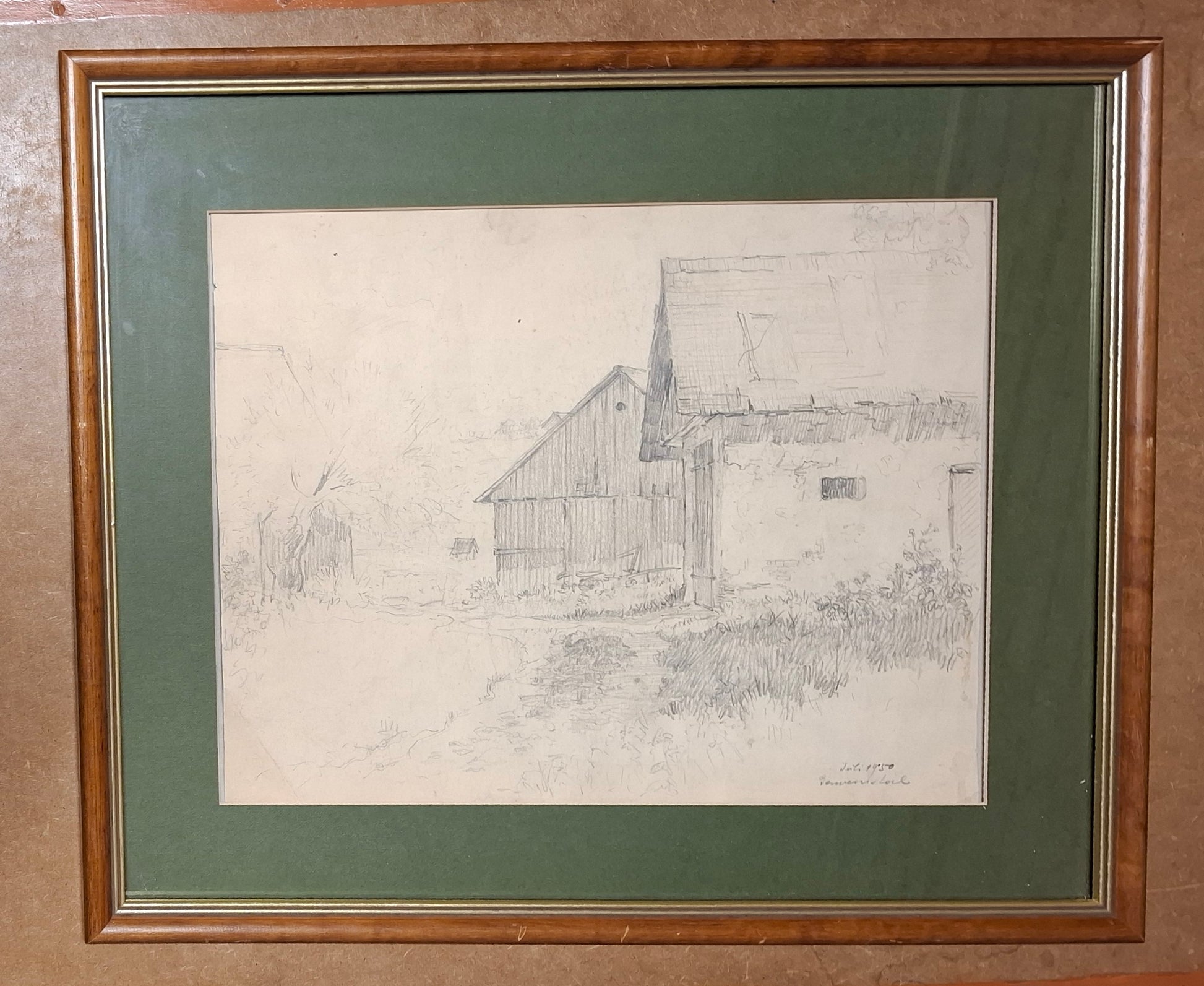 Bleistiftzeichnung Gehöft Gaweinstal, NÖ, 1950 sign.