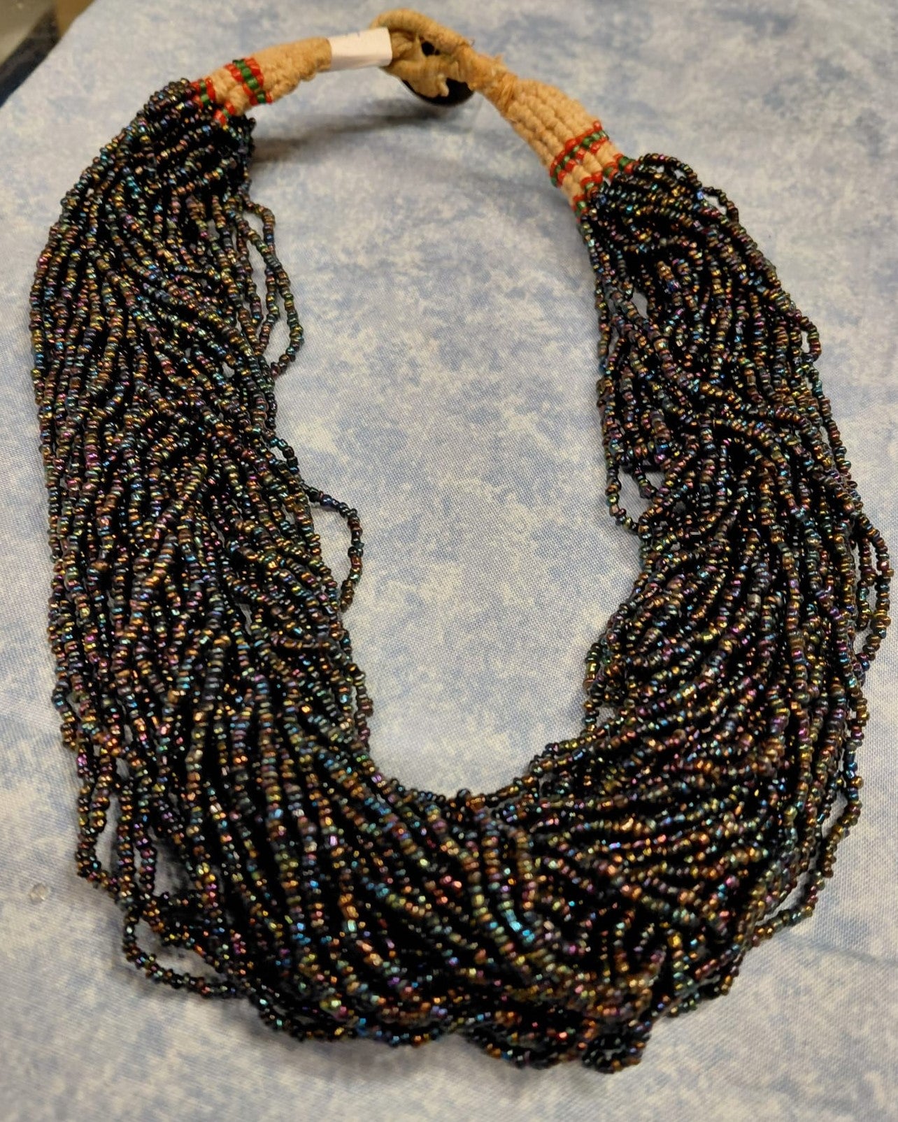 Dunkle mehrsträngige Halskette mit vielen Perlen