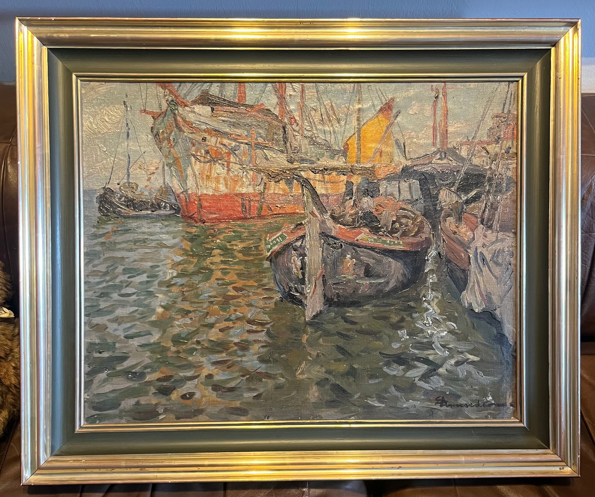 Eduard Ameseder, Hafenbild, Öl auf Leinwand