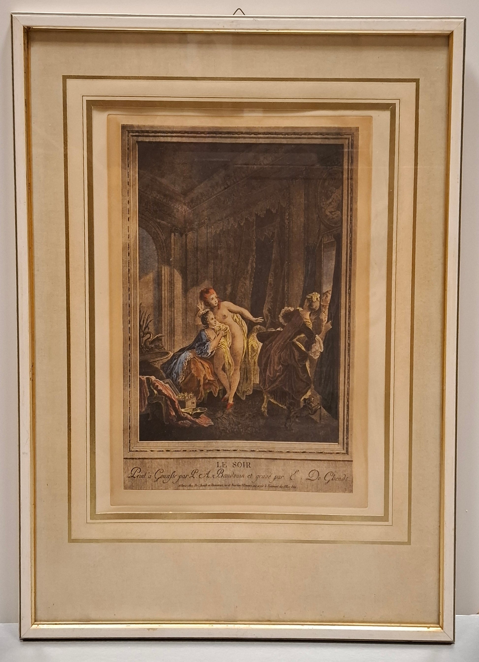 Gerahmter koloriert Kupferstich aus Frankreich : LE SOIR