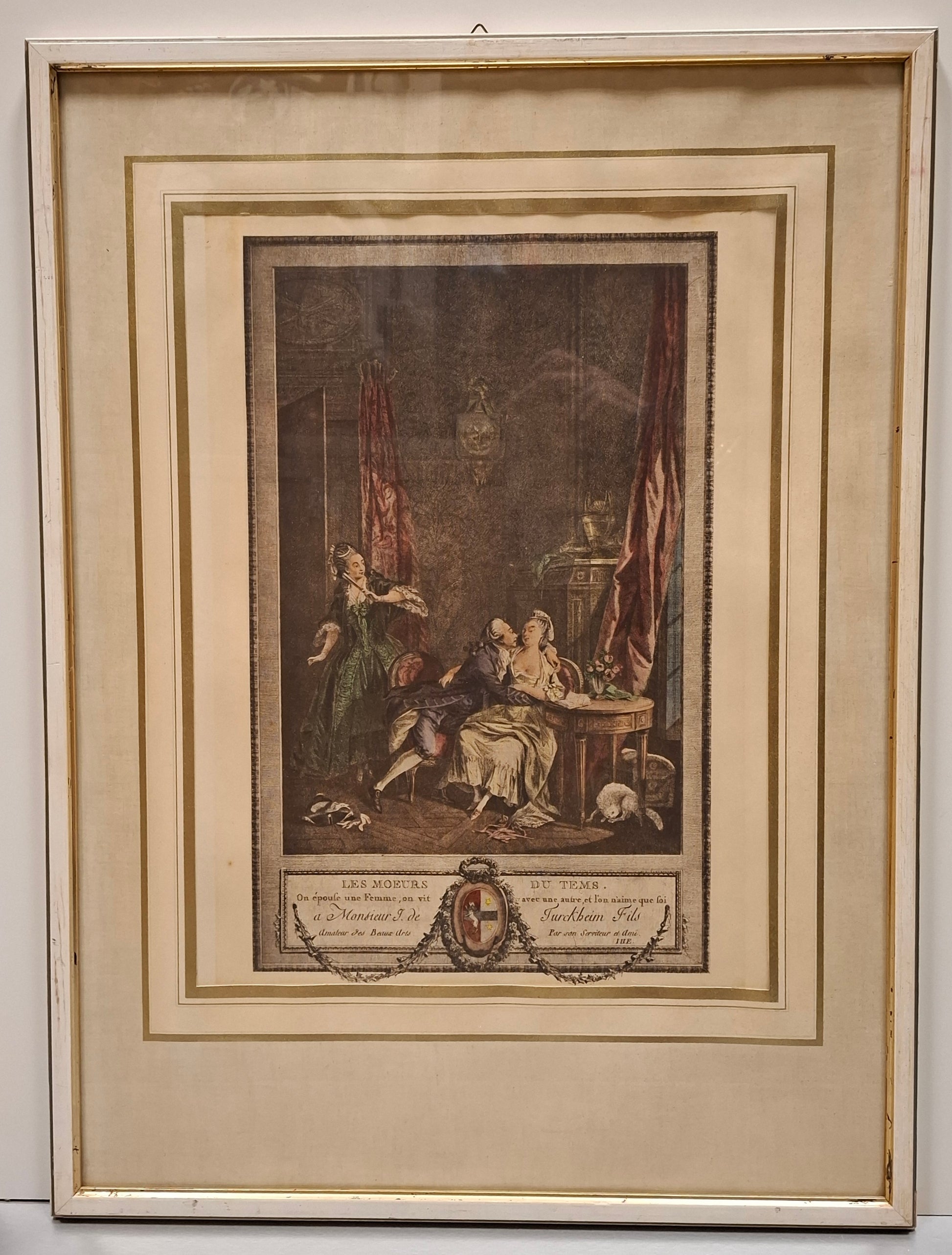 Gerahmter koloriert Kupferstich aus Frankreich : LES MOEURS DU TEMS