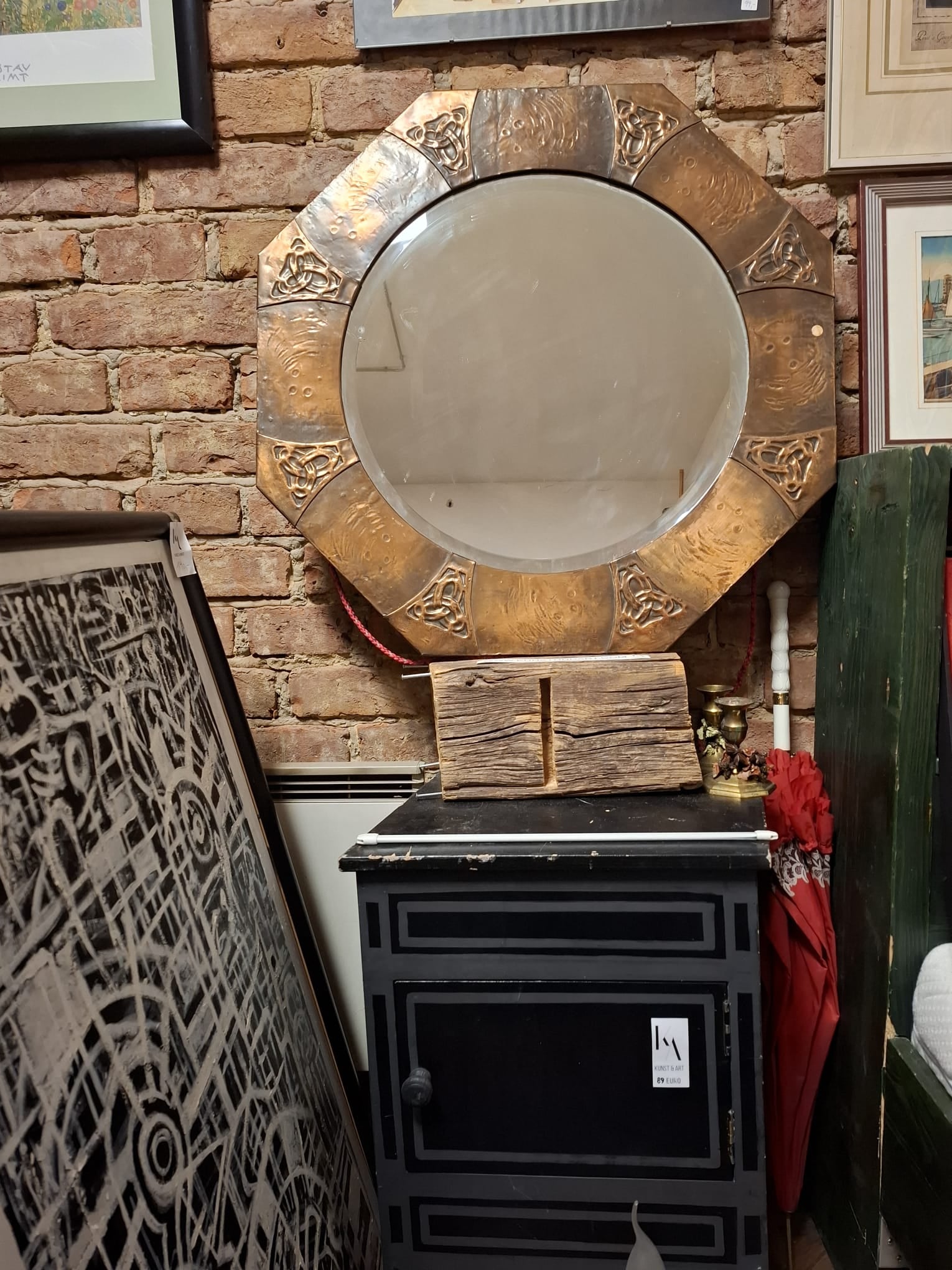 GROSSER MESSING GEHÄMMERTER SPIEGEL VINTAGE FENG SHUI ENERGIE
