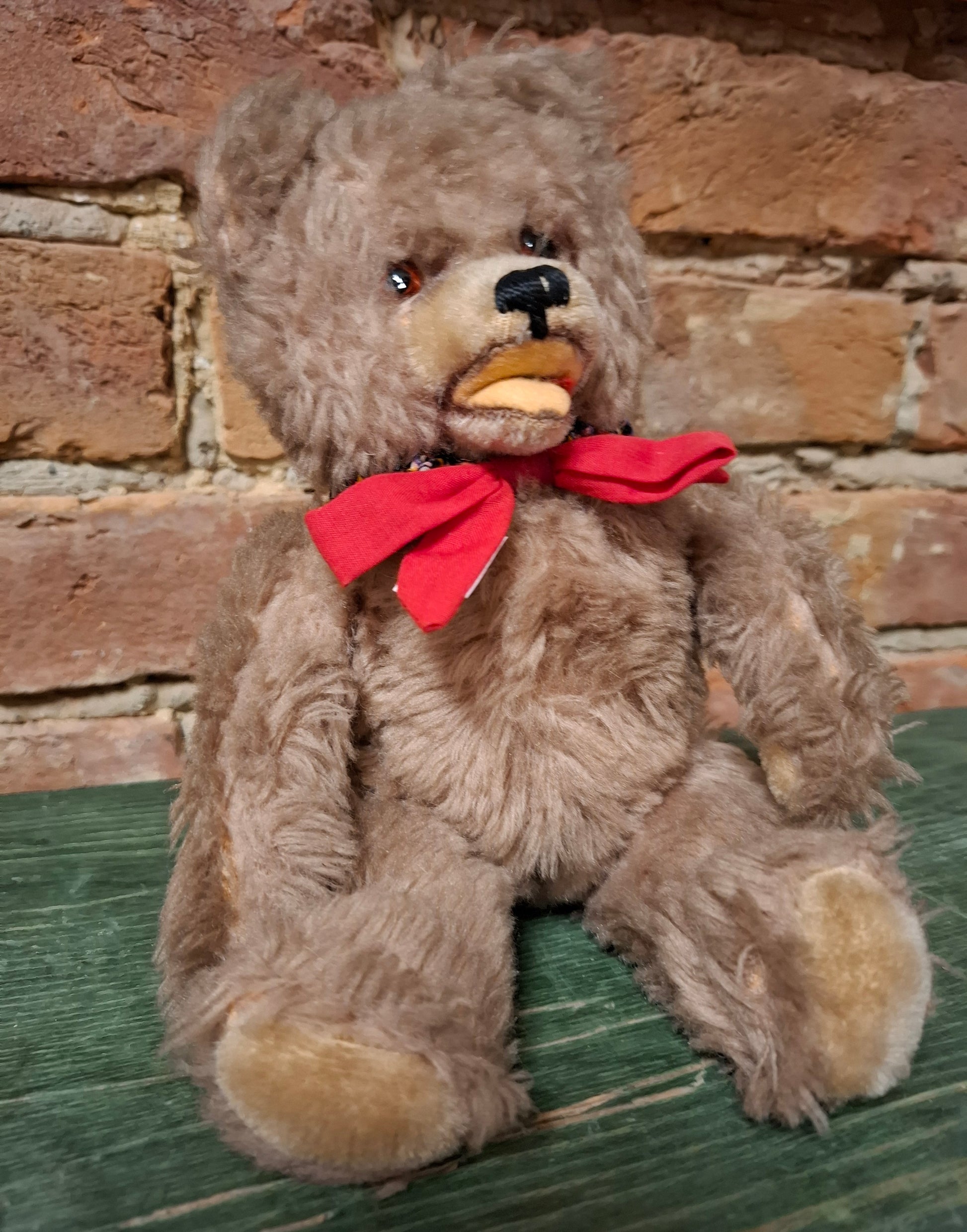Offener Mundbär mit rotem Bogen