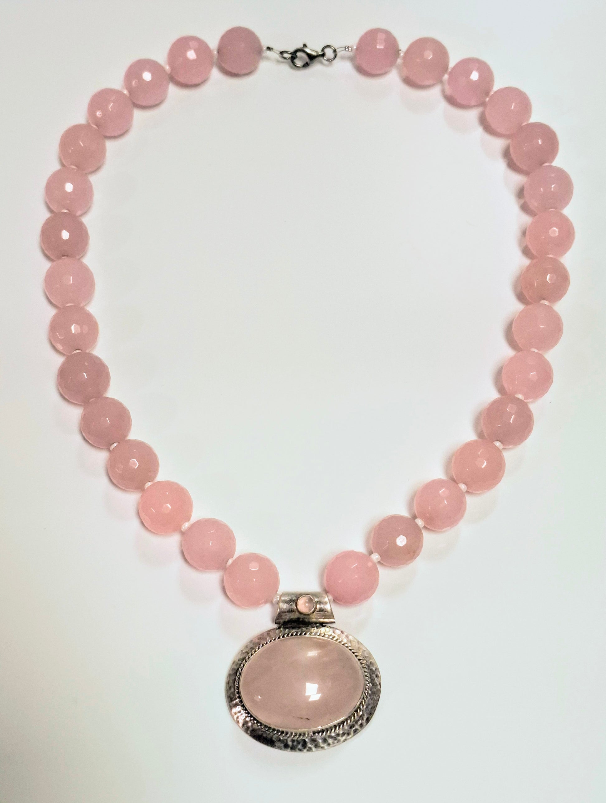 ROSENQUARZ MIT SILBER : STATEMENT-HALSKETTE