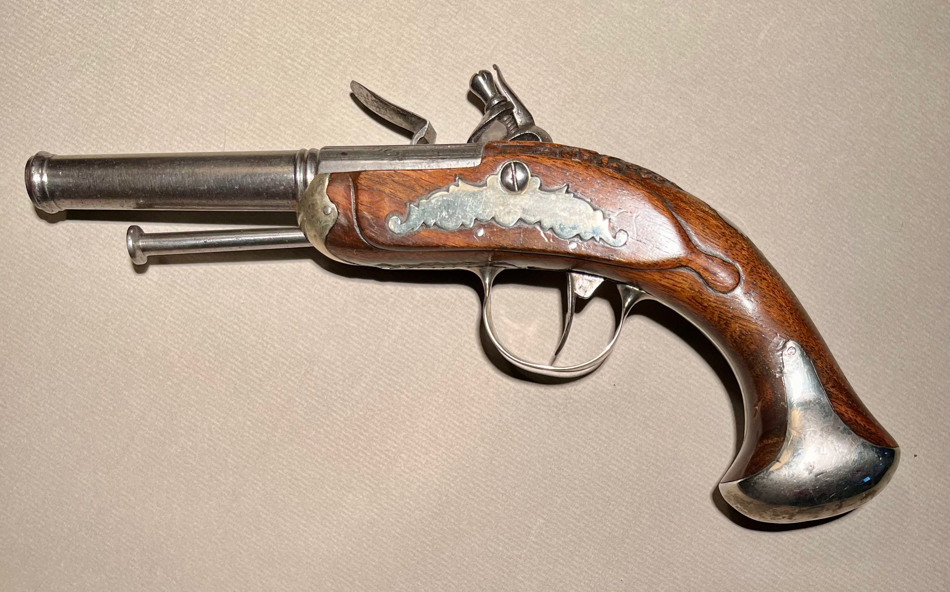 Steinschloss Reisepistole mit Silberbeschlägen, Adelsmonogramm, Frankreich um 1780